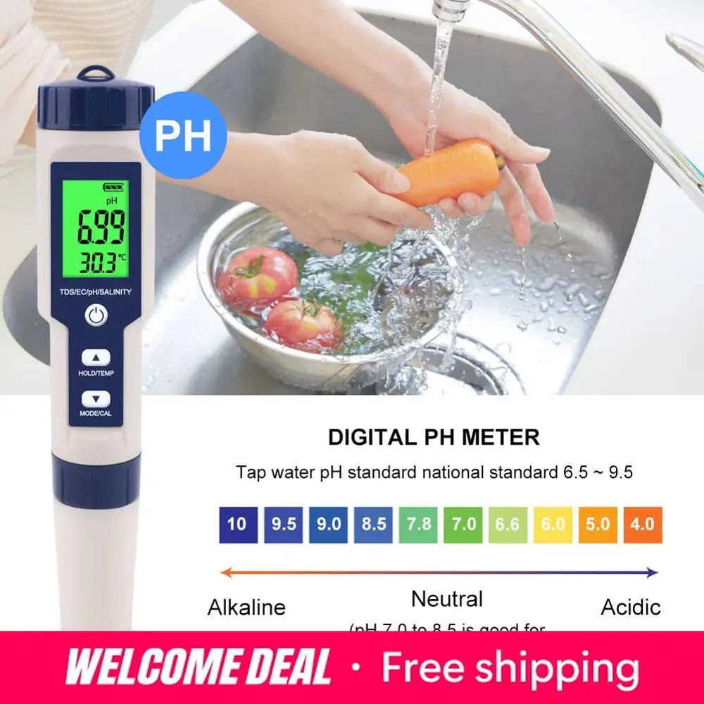 5barvy v 1 voda kvalita test měřič kyselost tds EC salinita teplota digitální monitor tester pro akvárium kaluž pití voda