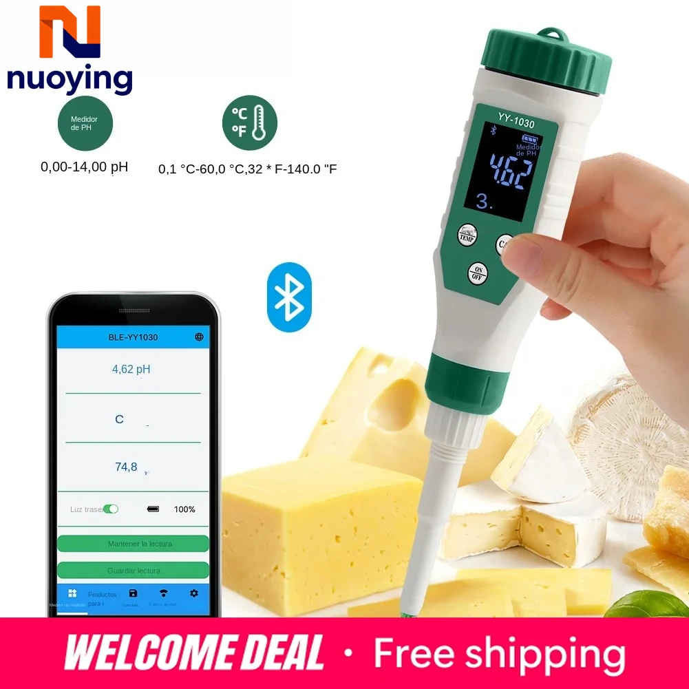 Vysoký přesnost chytrý Bluetooth jídlo kyselost tester 0.00-14.00 temp acidity měřič pro ovoce maso sýr alkoholové kvašení a konzervárenský