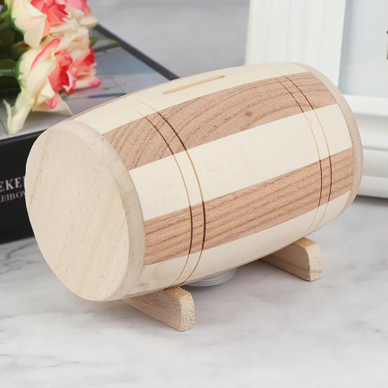 Horké prodej 1ks dřevěný devizy skříňka piggy banka devizy skříňka úspory víno barel dřevo piggy banka