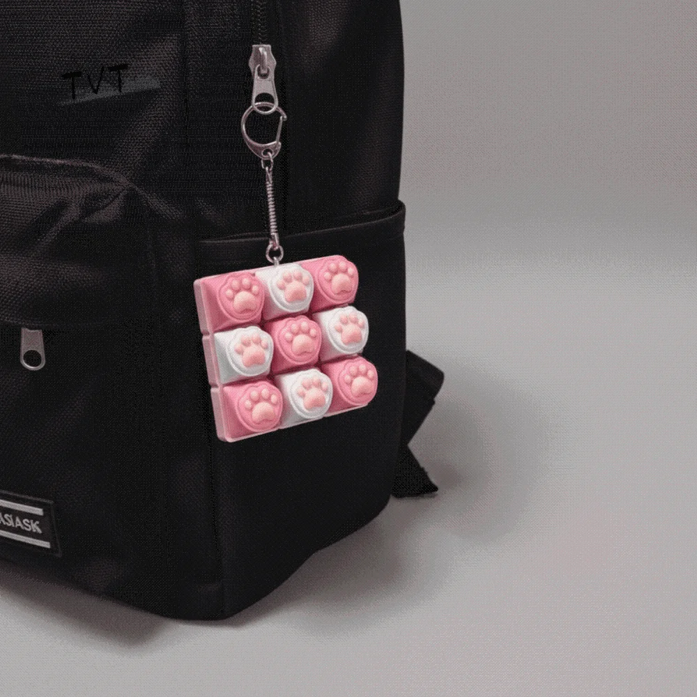 Legrační kocour packa klíčenka mechanická poškrabané 9 klávesnice dekomprese kroužek na klíče prst knoflík kreativní přízvuk reliéf přívěsek