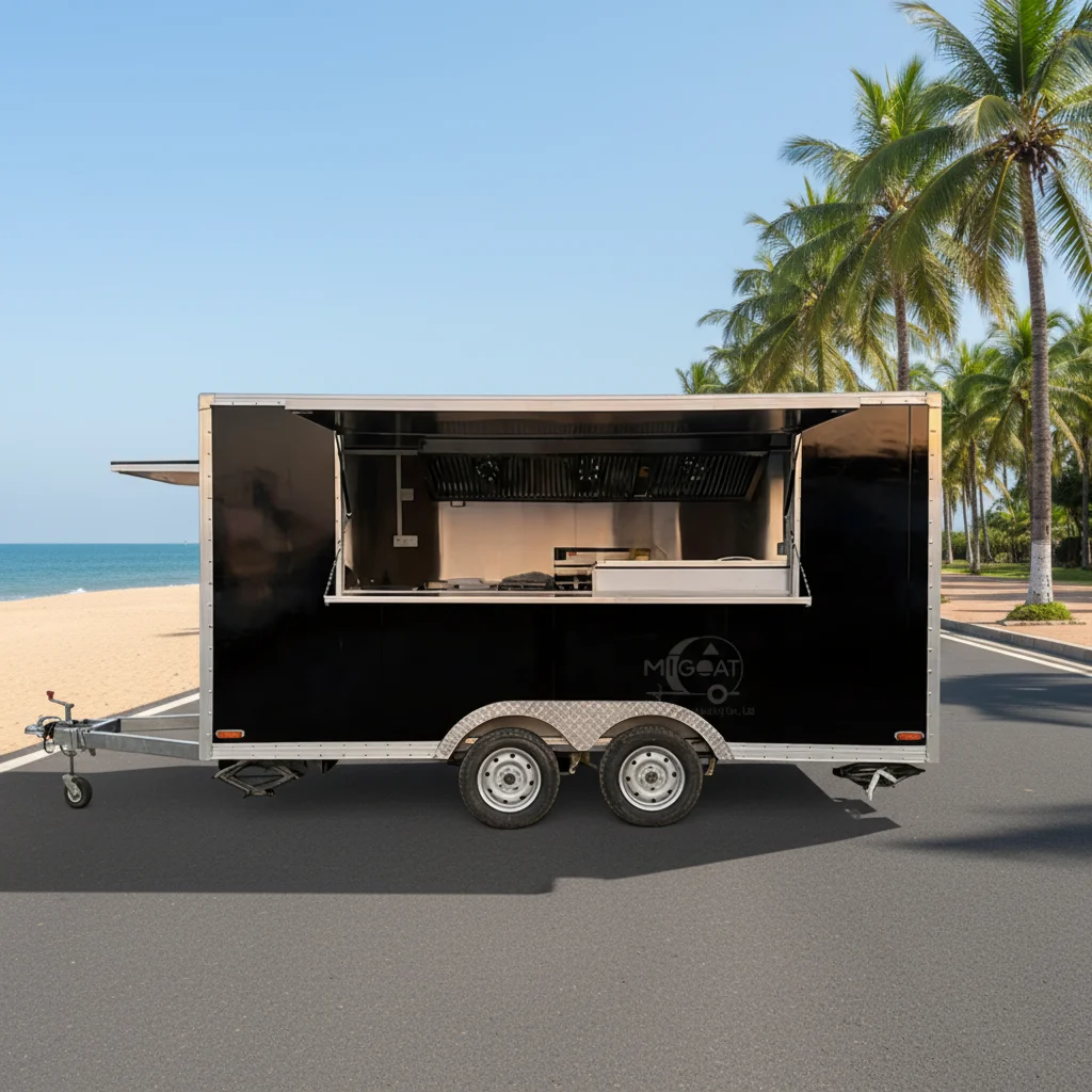 Dvojí jeden za druhým náprava nerez ocel led krém jídlo přívěs plný kuchyň setup rez odolné outdoorové stravování kamion