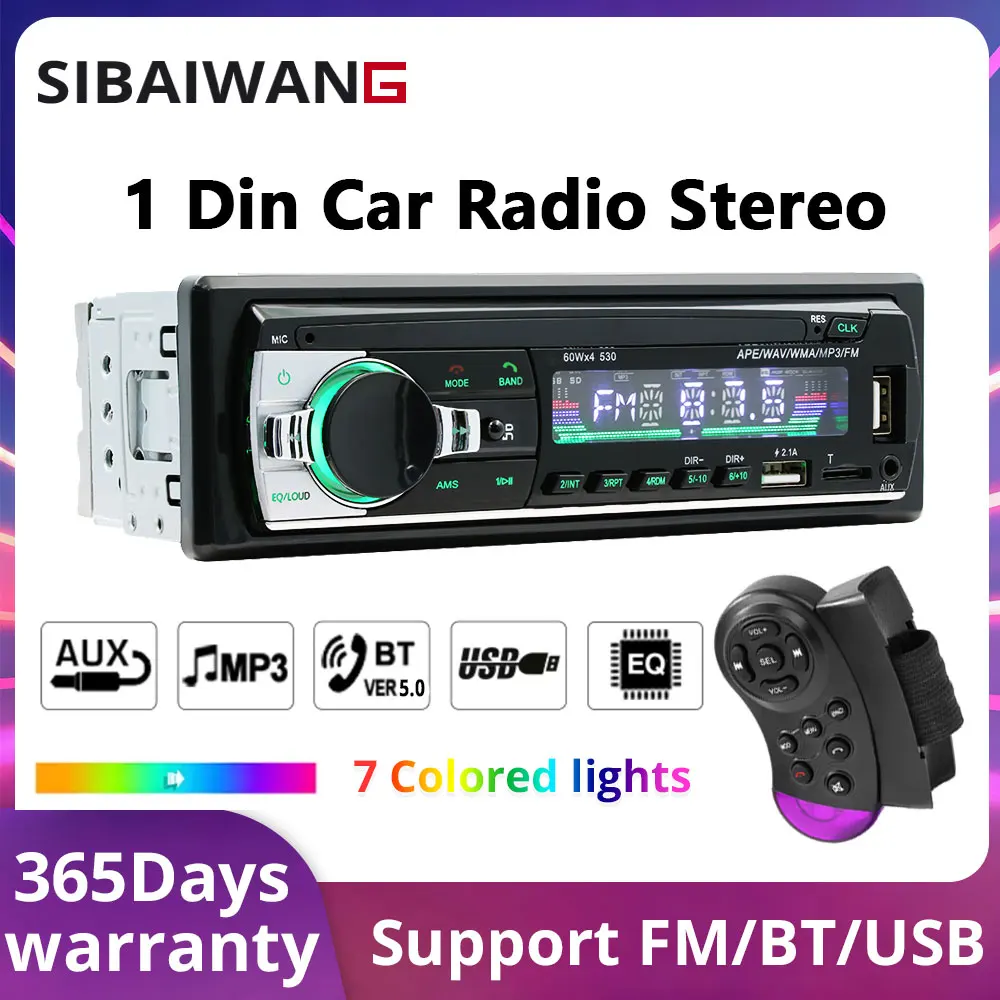 SIBAIWANG 1DIN MP3 auto rádio Bluetooth multimediální hráč podpora TF karta USB AUX vstupní audio EQ stereo autoradio univerzální mp3