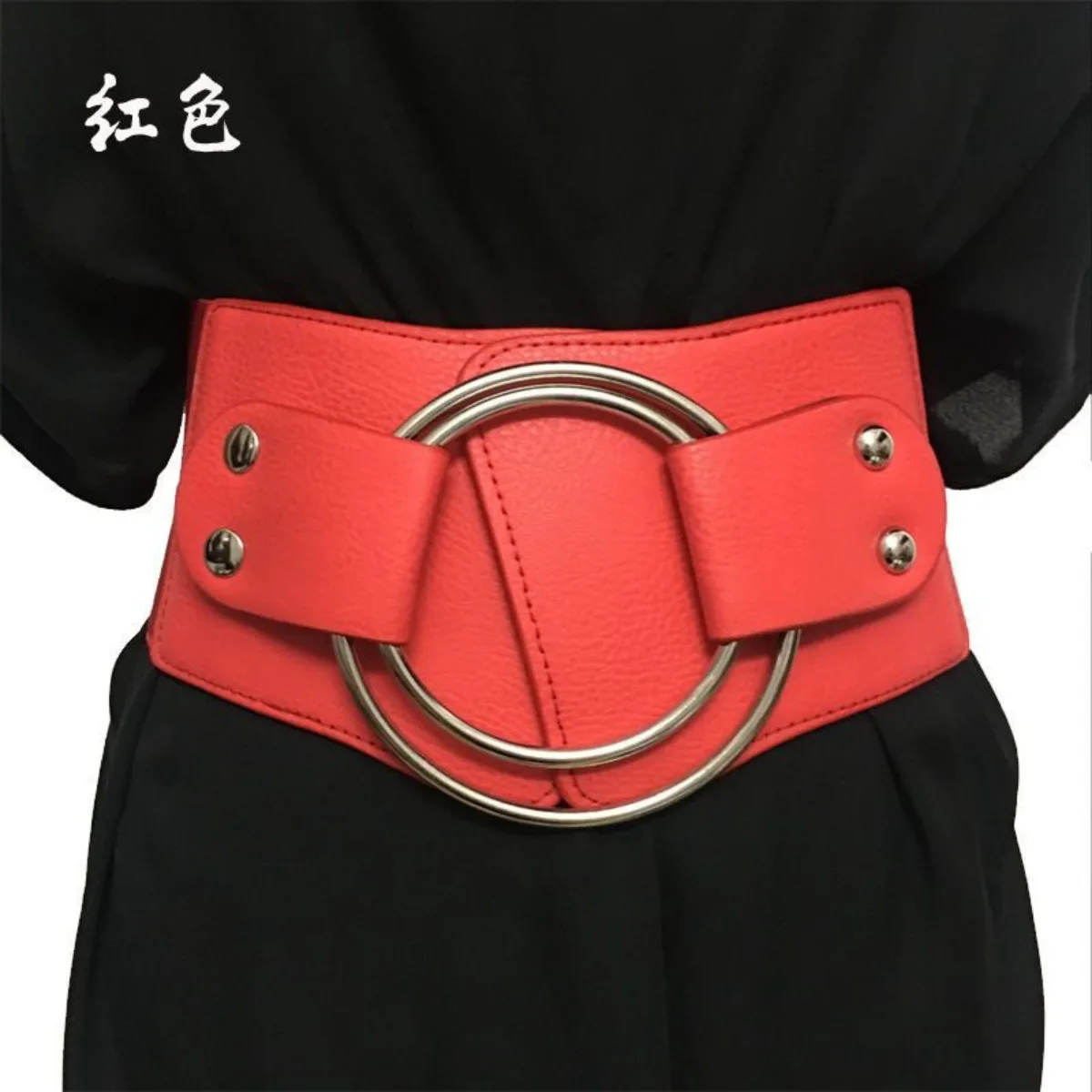 Černá široký pás černá cummerbunds pro ženy falešný kůže vintage ženy pás pro šaty kabát korzety růžová spona móda červená