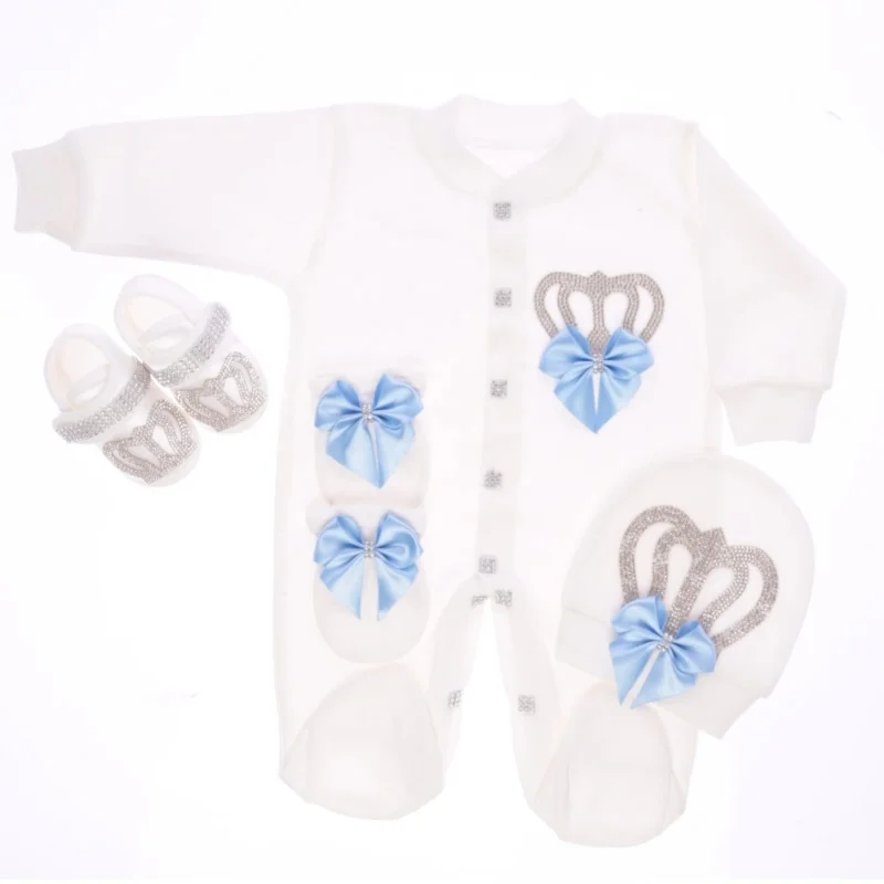 Děťátko sprcha dar novorozence 0-9 měsíce 4ks footed šmajchl pryč bílá lehký modrá stříbro koruna luk královský děťátko oblečení