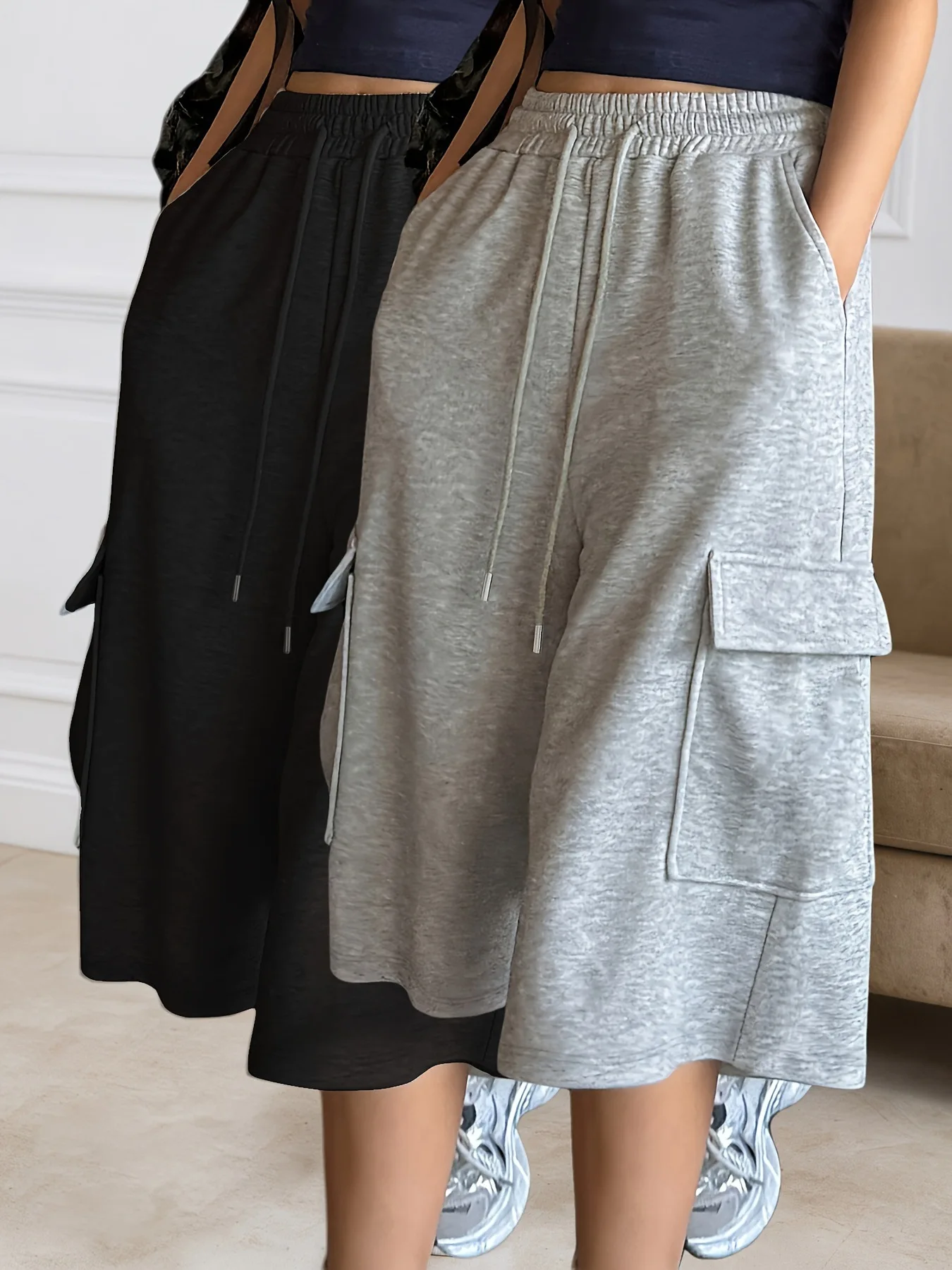 Ženy sportovní šortky volné ležérní široký noha šortky léto přímo odpovídat bermudy šortky šedá mid délka pohodlné bottoms