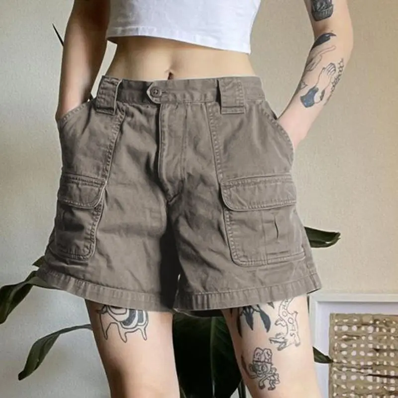 Prodyšné léto šortky pro ženy stylové dámská náklad šortky s kapes pro léto tramping oblečení koleno délka bermudy