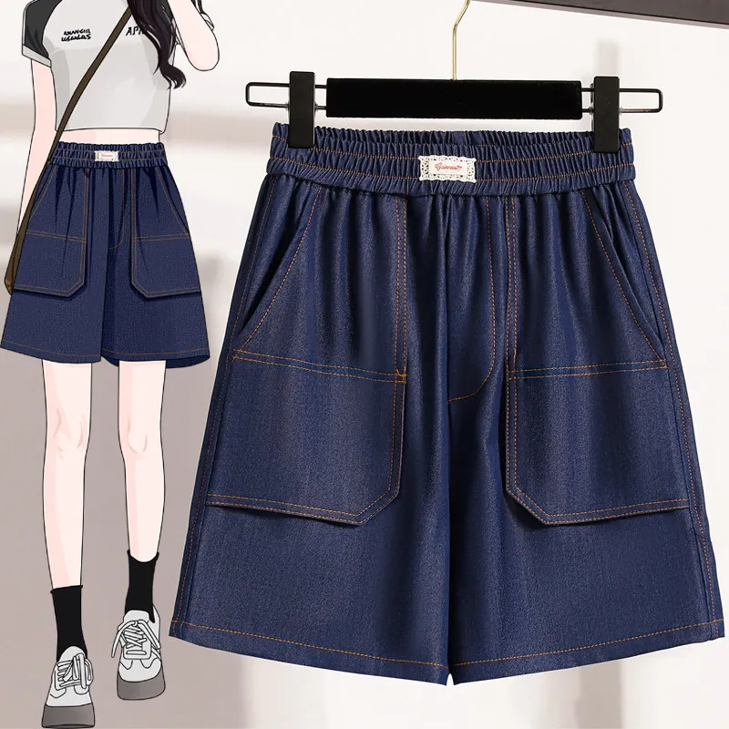 Léto hubený vysoký waisted five-point široký noha kalhot ženy zeštíhlující velký kapes moderní a versatile ležérní džínové šortky