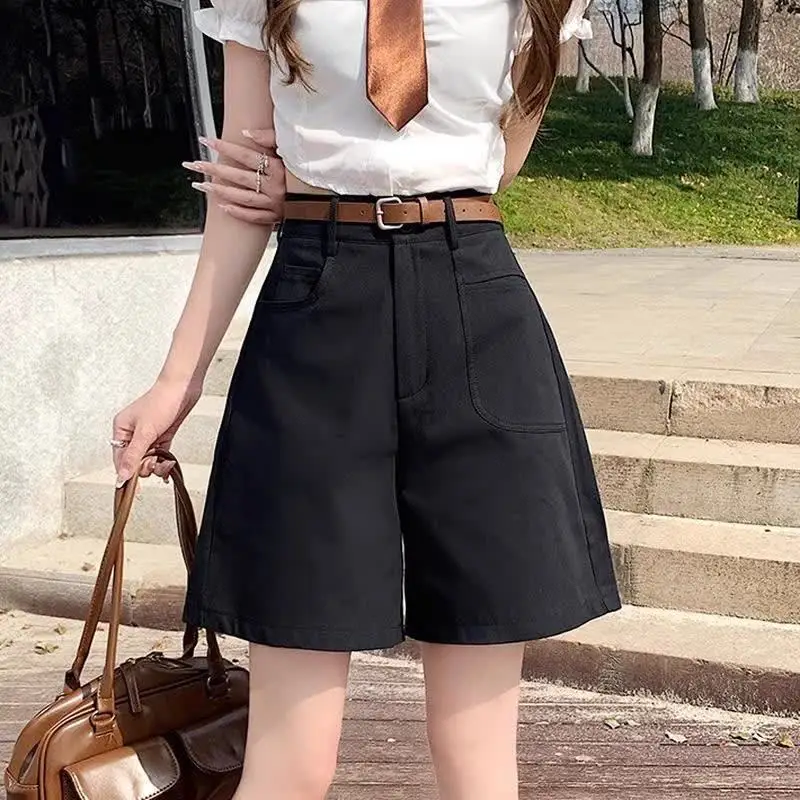Celistvý barva šortky léto nový dámská vysoký waisted ležérní volné jednoduchý versatile móda široký nohama náklad pět čtvrt kalhot