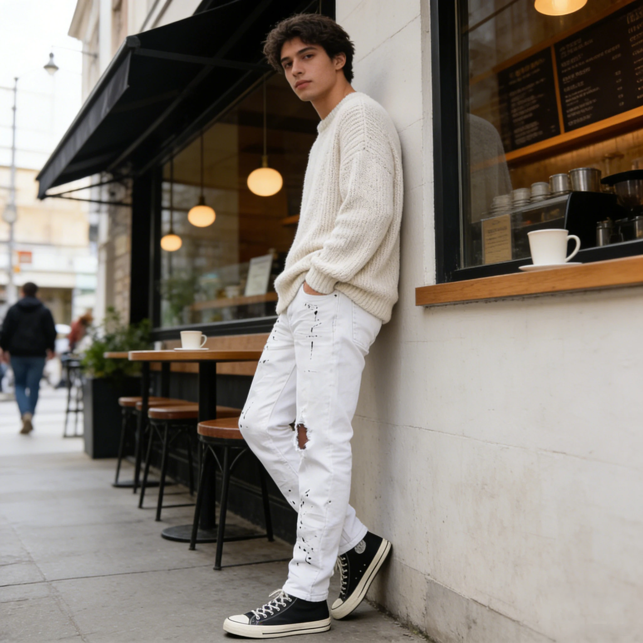 Moderní pánské děrovaný bílá džíny, retro vysoký ulice styl, ležérní, elastická, pohodlné přímo noha kalhot pro muži