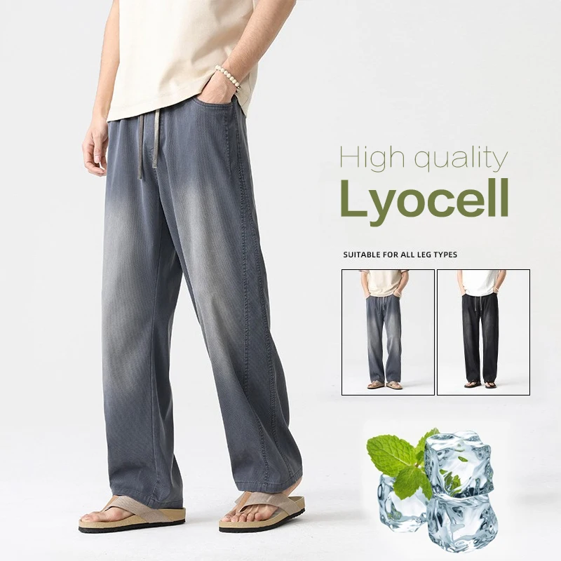 Vysoký kvalita léto hubený lyocell textilie džínové pánské džíny volné přímo noha elastická pás kalhoty pánský značka oblečení M-4XL