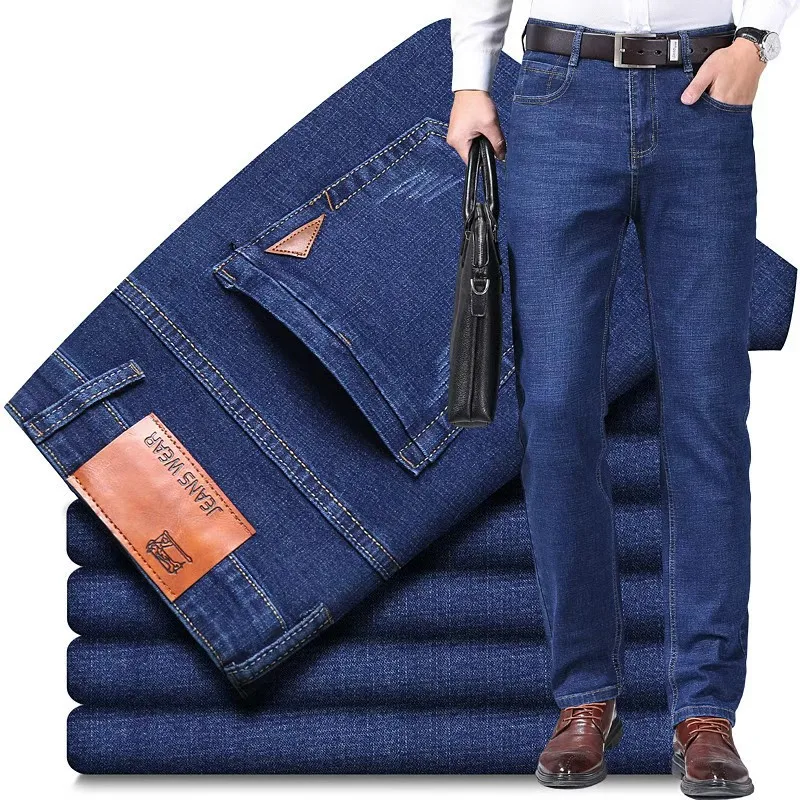 Nový 2025 pánské džíny přímo noha elastická štíhlý odpovídat džíny pánské dlouhé kalhot pánské ležérní kalhot džínové kalhot volné džíny