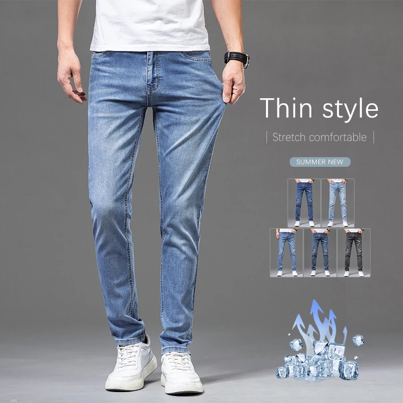 Léto 2026 nový hubený pánské štíhlý džíny pohodlné elastická základní ležérní mládež džínové kalhot hustý móda korejské značka pánský kalhoty