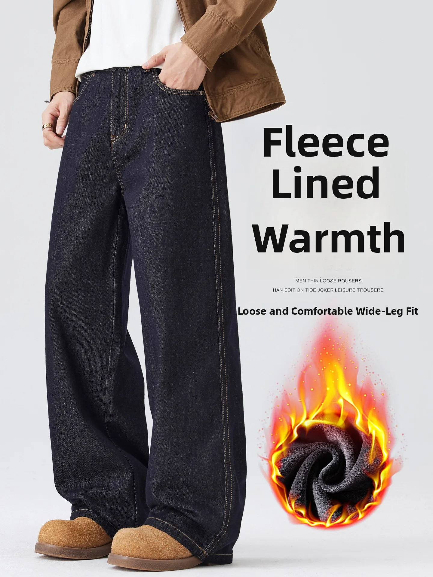 Americký sle fce lemované thiened volné přímo noha džíny ležérní dlouhé kalhoty pro muži zima období teplý nést odolné