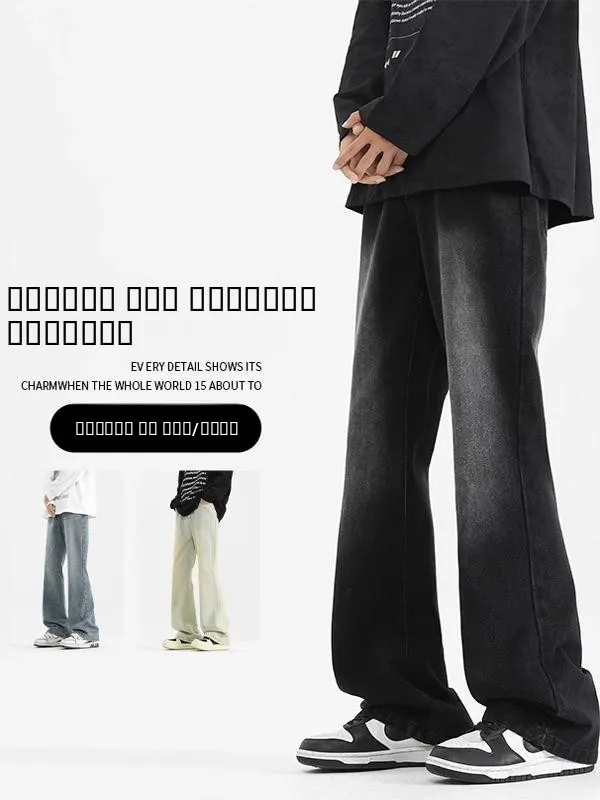 Pánské léto vintage americký plápolající džíny vysoký ulice volné dlouhé kalhot podzim široký noha ležérní bavlna džínové kalhoty