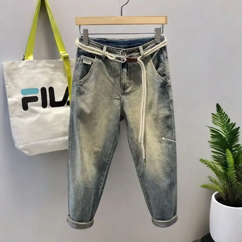 Hombrefashion newhigh-qualityy2k pánské džíny prádelna nostalgické připoutat se štíhlý odpovídat lehký modrá džíny výtvarník vysoká kvalita kalhot hom