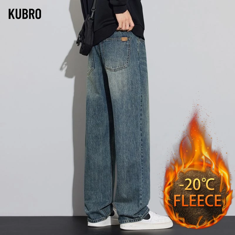 Pánské džíny zima teplý zahuštěný volné přímo ležérní džínové dlouhé kalhot muži móda džínové kalhoty muži oblečení plandavé džíny muž