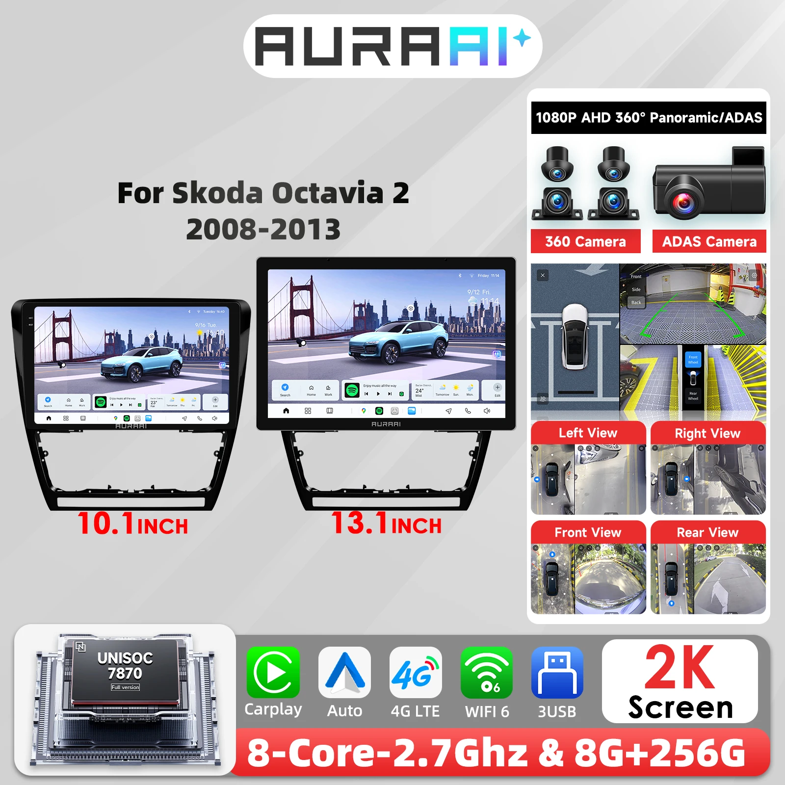 8G+256G Carplay Android auto rádio pro skoda octavia 2se 2008 - 2013 2k chytrý obrazovka adas 360 kamera multimediální GPS stereo