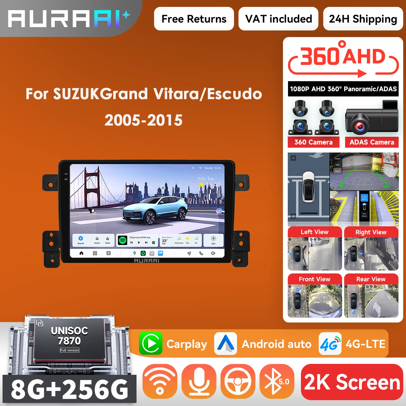 AURAAI 8+256G auto chytrý obrazovka pro suzukl crand vitara terč 2005 - 2015 Carplay Android auto rádio adas 360 kamera rds