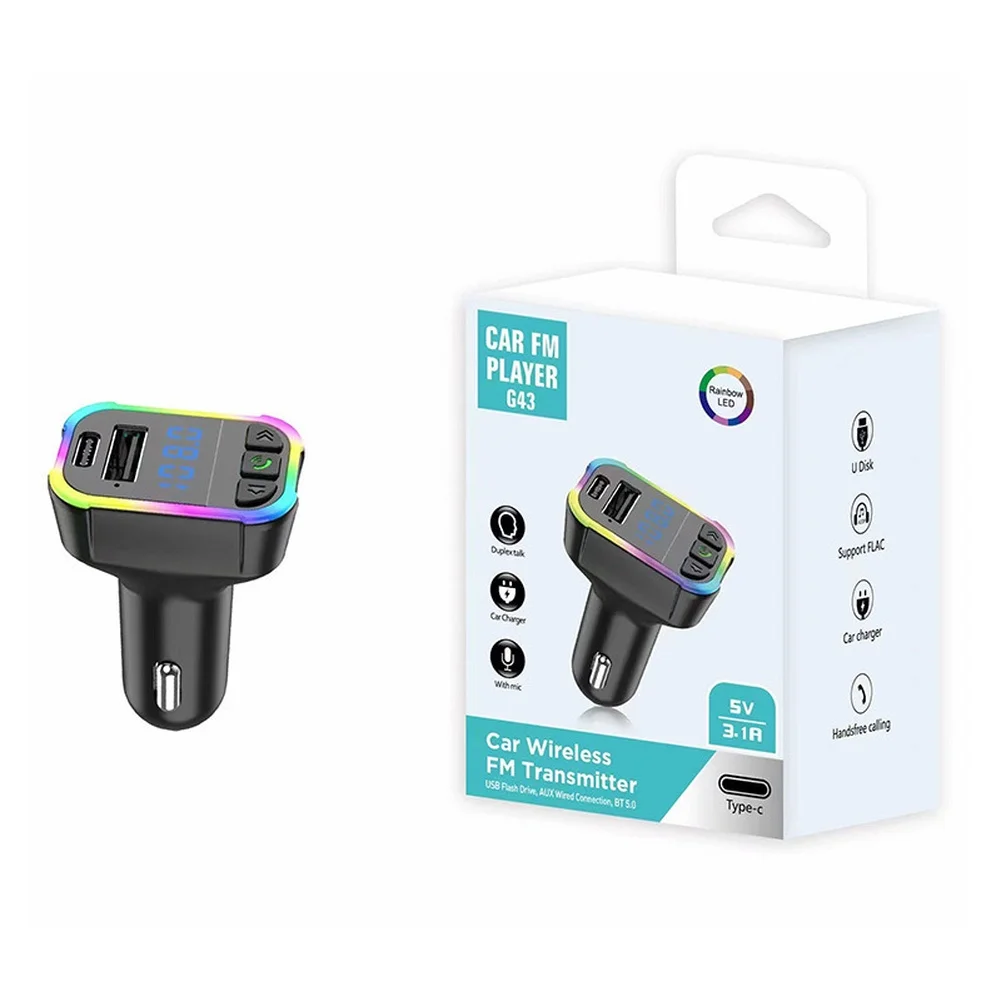 Bezdrátový FM rádiový vysílač pro auto s dvojí USB 31A rychle nabíjení podporuje 875108mhz stereo a multi formát playback