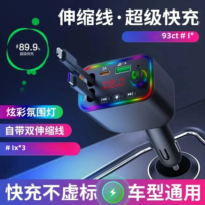 Bezdrátový auto MP3 hudba hráč 3čepel v 1 USB auto nabíječka adaptér rychle nabíječka zatažitelný kabel pro iPhone Samsung Xiaomi Huawei