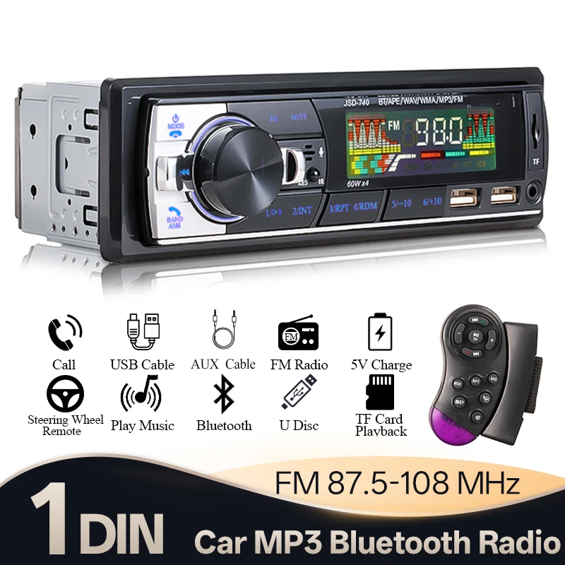 Auto rádio 1din auto stereo MP3 Bluetooth hráč s vyhřívání kolo regulátor podpora aux vstupní USB FM nabít 12V univerzální