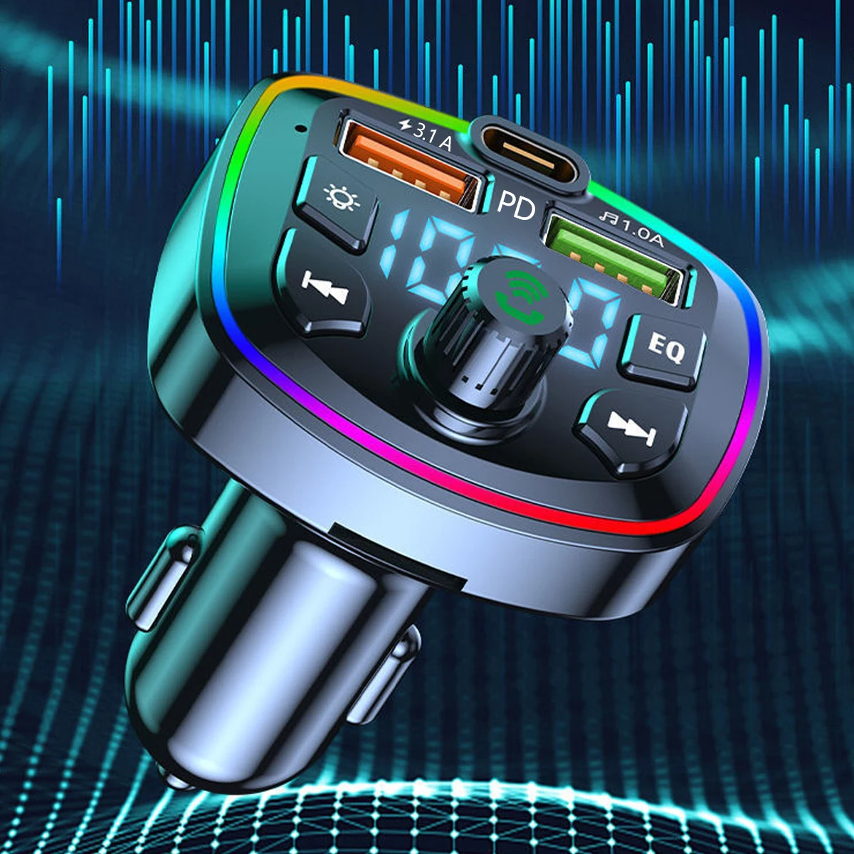 Auto Bluetooth adaptér 5.3 FM rádio rádiový vysílač MP3 hudba hráč handsfree volá audio přijímač type-c PD USB auto rychlý nabíječka