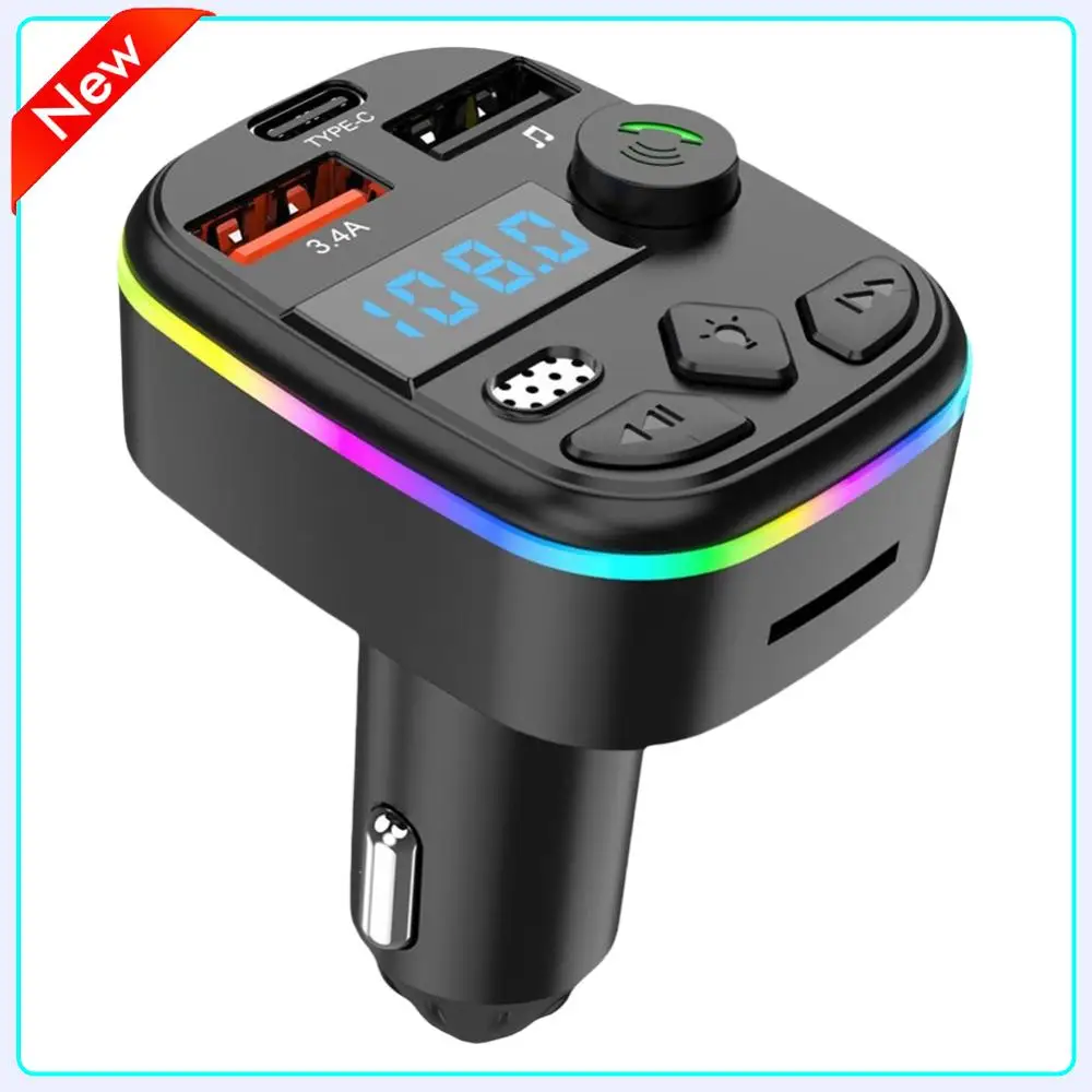 Bluetooth 5.3 FM rádiový vysílač dvojí USB type-c auto nabíječka hands-free volá TF karta U kotouč MP3 hráč 12V-24V auto adaptér