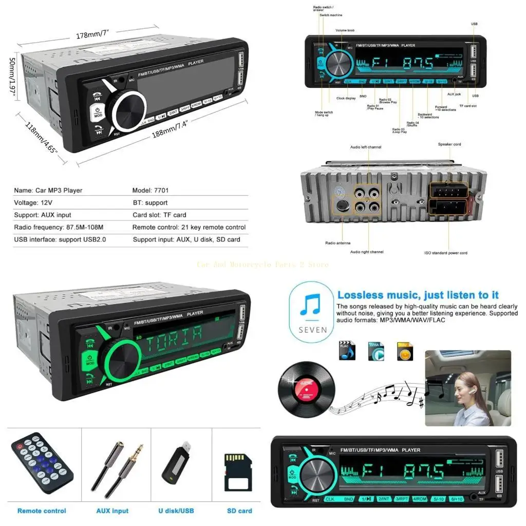 Auto mp3 hráč stereo vysoký věrohodnost 12v/24v dvojí USB s nabíjení funkce auto kamion tf/fm/aux Bluetooth audio rádio