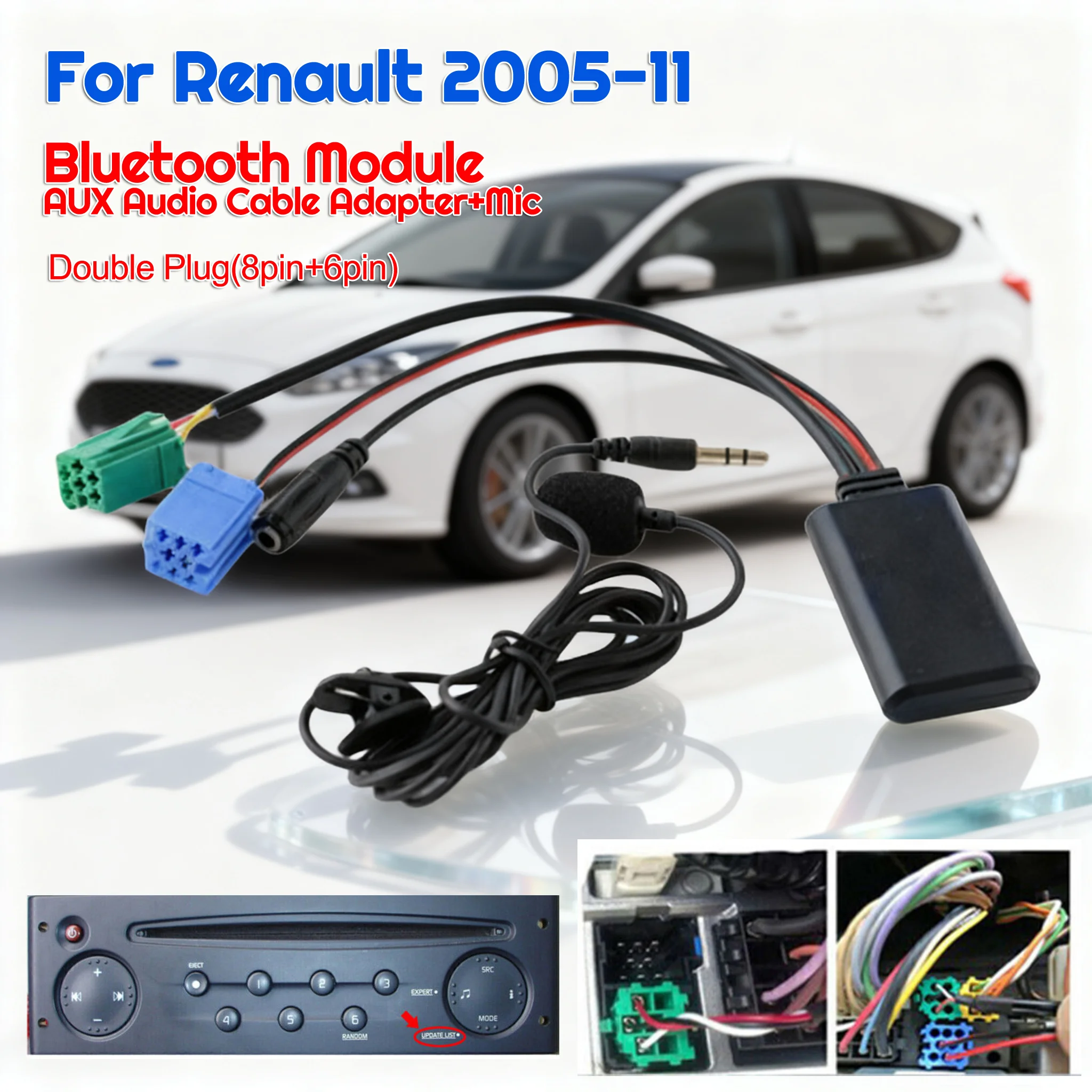 Auto Bluetooth modul AUX v bezdrátový brian wayne transeau modul s mikrofon audio kabel adaptér pro renault kleió espace kangoo laguna megane