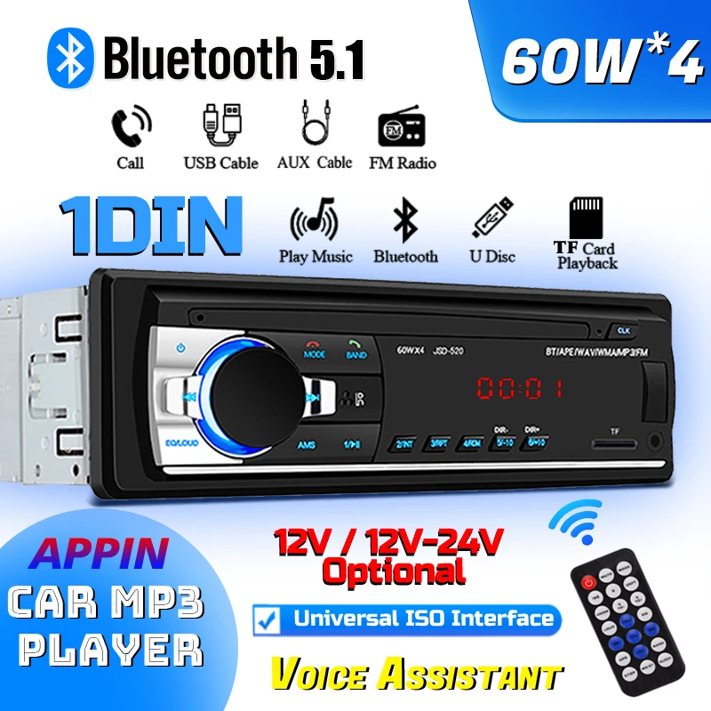 Univerzální auto rádio 1 DIN 12V Bluetooth stereo MP3 audio hráč s AUX FM USB brian wayne transeau podpora hlas asistent jeden palubní autoradio
