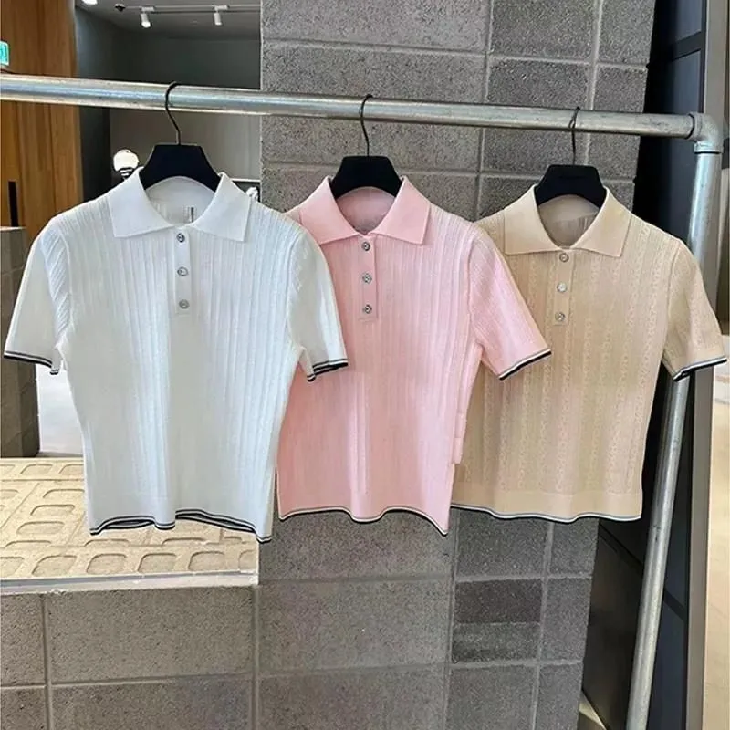 Dámská golf apparel: moderní ležérní crew-neck úplet slim-fit short-sleeve tričko