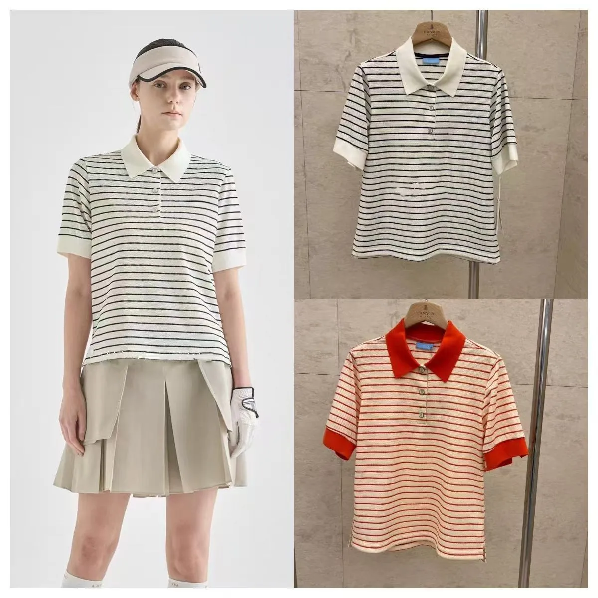 Dámská nový příjezd golf apparel: collared, pruhované, short-sleeve, color-blocked, pohodlné outdoorové sportovní oblečení