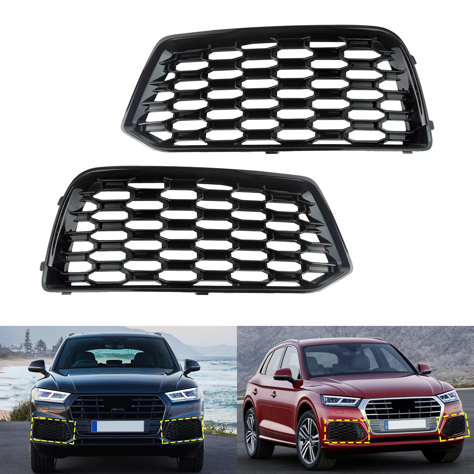L+R přední hojnost gril dolní mlha jízda lehký zakrýt radiátor mříž pro audi Q5 2018 2019 2020 pravidelný modelka voštinová pletivo