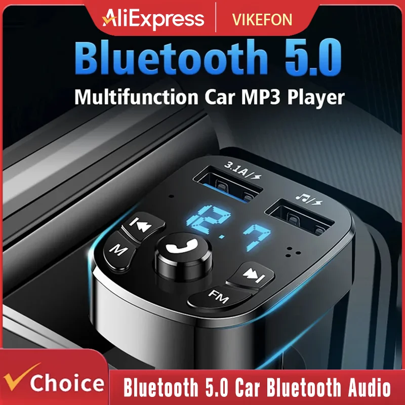 Auto Bluetooth 5.0 FM rádiový vysílač bezdrátový adaptér mikrofon USB auto 2.1A hráč přijímač dvojí MP3 audio V1N7
