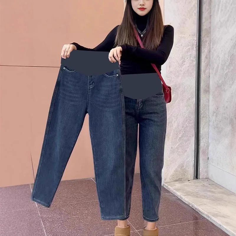 Těhotenské oblečení podzim a zima těhotná ženy břišního podpora kalhoty vysoký pás kalhoty džínové džíny kalhoty těhotenství oblečení