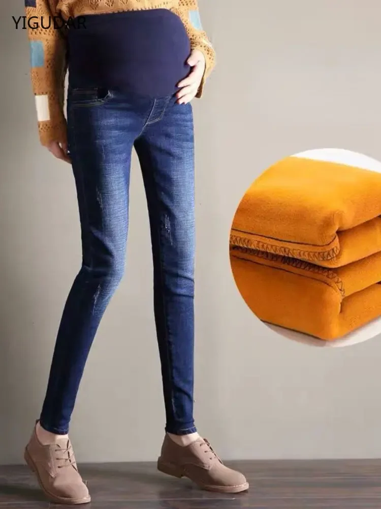 Móda těhotenské oblečení elastická těhotenské džíny hubená těhotenství kalhot trouers pro těhotná ženy plus samet zima oblečení