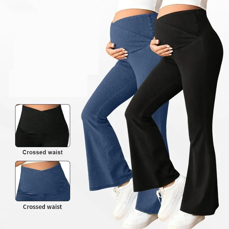 Těhotenské bootcut džíny pro ženy vysoký pás břišního podpora kalhot připoutat se štíhlý odpovídat dynamický vztlak boky pohodlné těhotenství džínové kalhoty