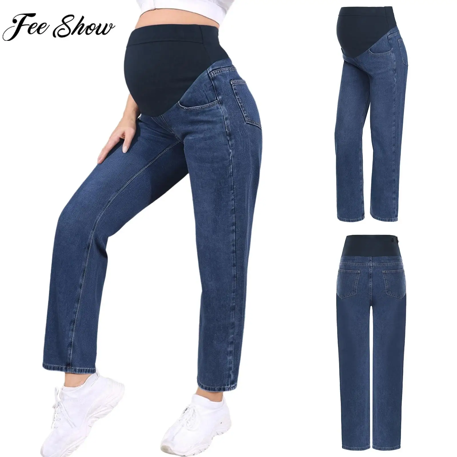 Těhotenské vysoký pás nad břišního džíny těhotná ženy nastavitelný pás móda ležérní volné džínové kalhot pouliční oblečení denně nést