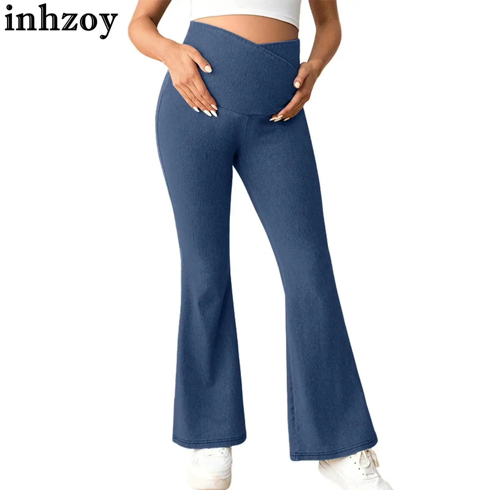 Těhotenské vysoký pás podpora břišního móda ležérní plápolající džíny těhotná ženy natahovací bell-bottom džínové kalhot joga kalhoty