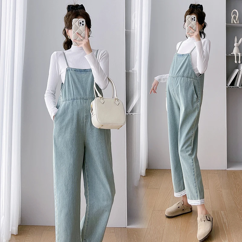 316# 2024 podzim nový móda džínové těhotenské bryndáček džíny volné jumpsuits oblečení pro těhotná ženy těhotenství kombinézy košile sety