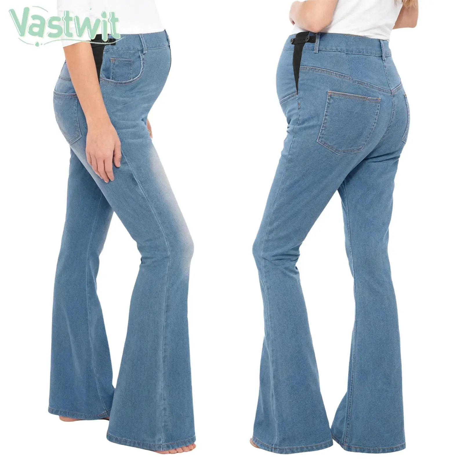 Náhrada připoutat se těhotenské džíny vysoký pas podpora plápolající noha pohodlné & stylové pro každodenním nést kalhot pro těhotná ženy