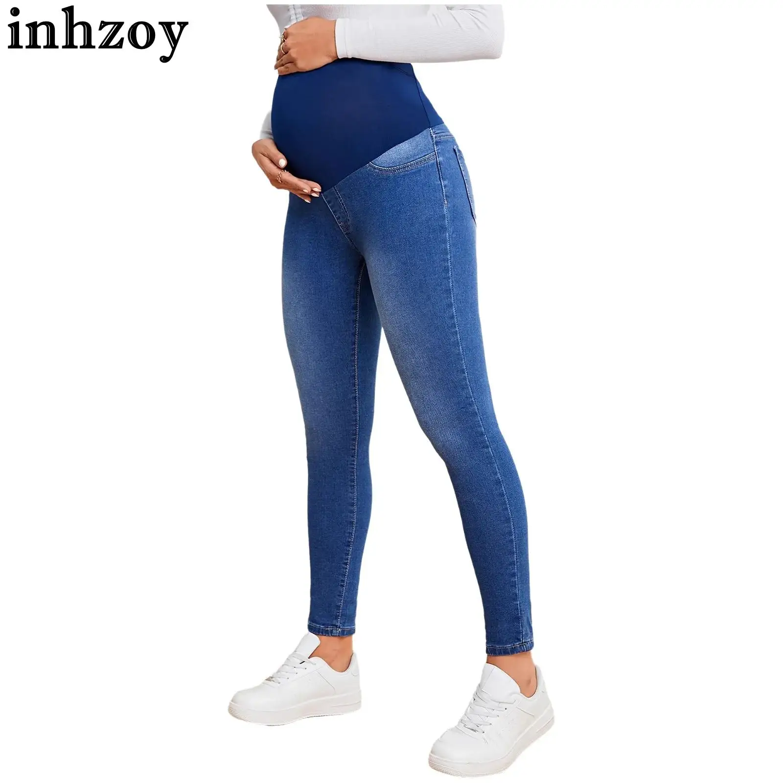 Těhotenské vysoký pás nad břišního natahovací hubená džíny móda ležérní džínové kalhot s kapes denně úřad práce oblečení