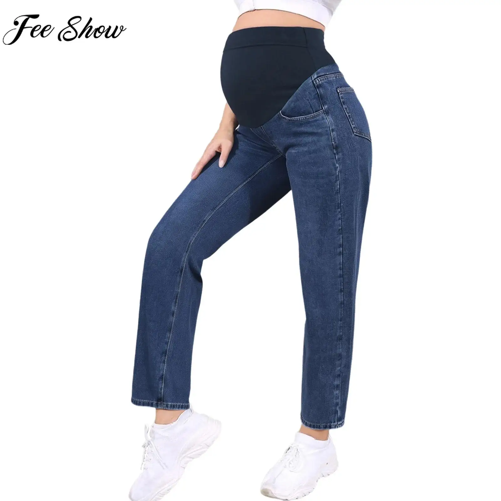 Těhotná ženy vysoký pás nad břišního plápolající džíny džínové kalhot těhotenské joga úřad práce děťátko sprcha fotografie kostým