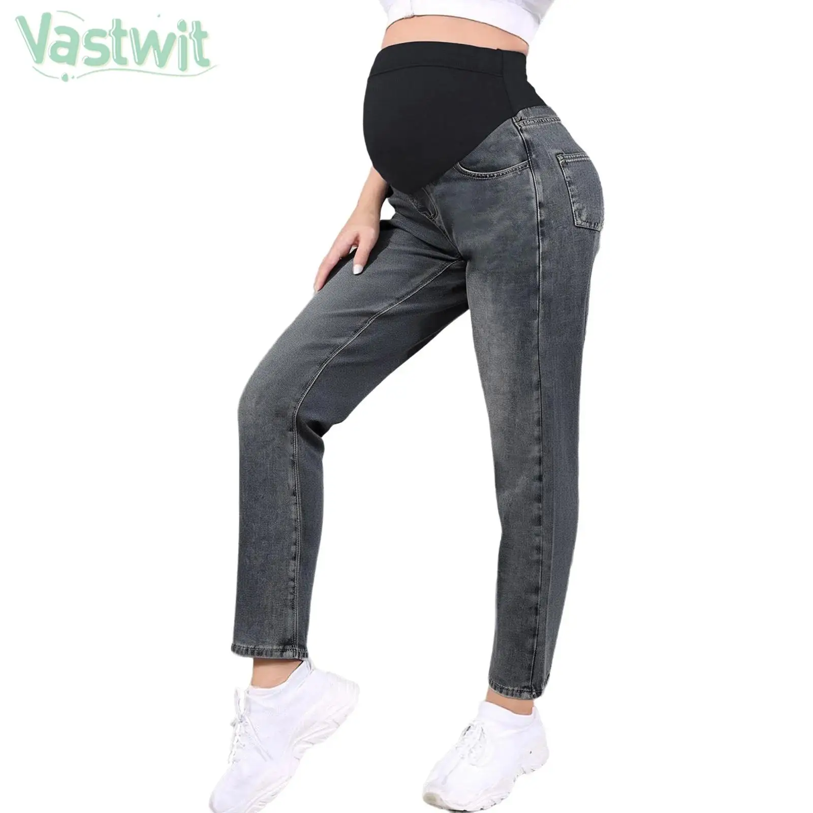 Těhotenské móda ležérní džíny vysoký pás podpora břišního boky liftingový elastická džínové kalhot pro denně práce loungewear pouliční oblečení