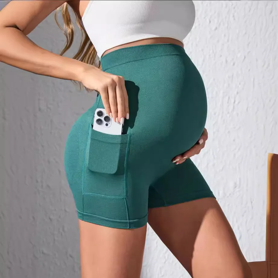 Evropan a americký těhotenské kapsa three-point kalhot léto 2025 nový vysoký pás podpora sportovní joga těhotenské šortky ženy