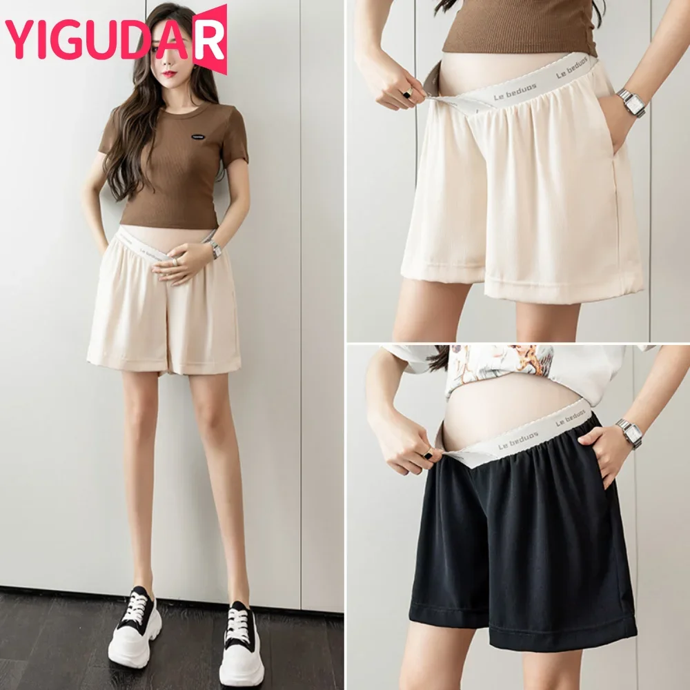 Těhotenské léto šortky nízko pás kalhoty široký noha kříž volné šortky ležérní těhotná žena celistvý barva krátký kalhot sport kalhot