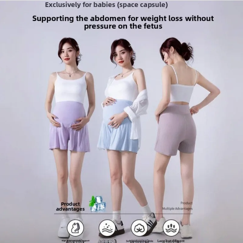 Léto led hedvábí bezpečnosti šortky kamaše pro těhotná ženy plus rozměr těhotenské krátce těhotenství spodky kalhot M-XL