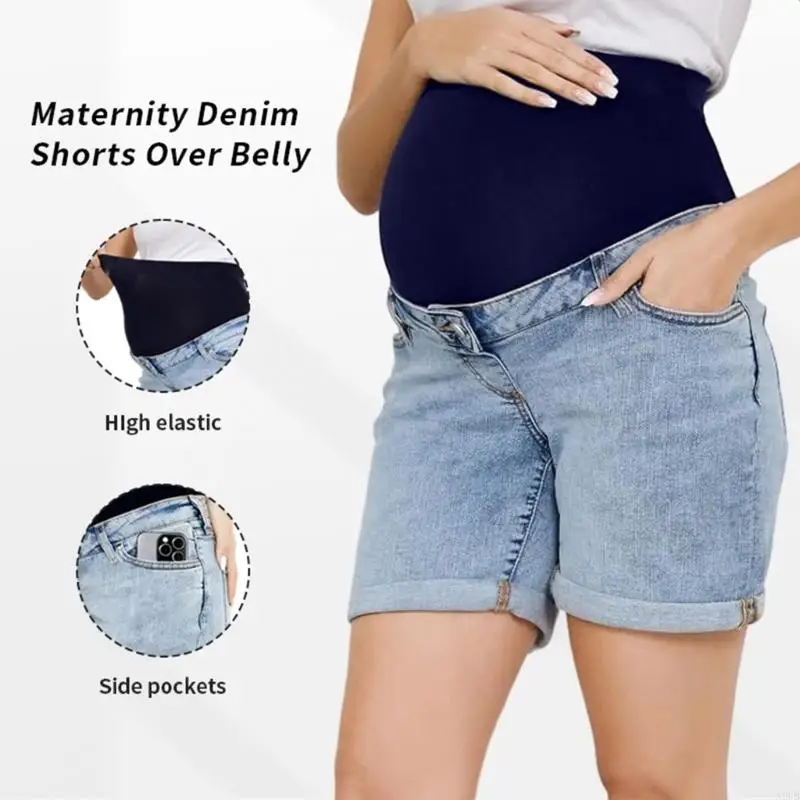 Těhotná ženy ležérní džínové šortky těhotenské nastavitelný pás břišního podpora ripped krátký kalhot džíny léto těhotenství oblečení