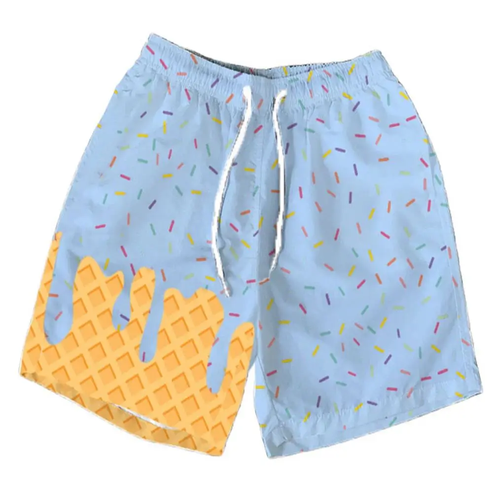 2026 léto potištěné ležérní šortky s multi-color oplatek led krém design, pláž kalhot, moderní rychlý schnoucí šortky