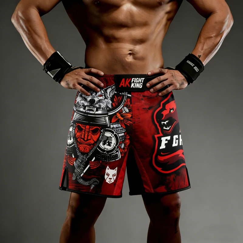 FLUORY drak tisk a výšivka prodyšné box šortky, vhodný pro potírat, MMA fitka tvoření oblečení, muay thajské šortky